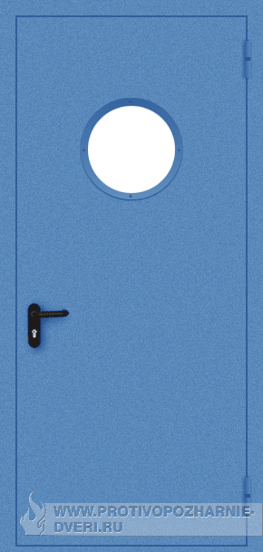 Однопольная противопожарная дверь c круглым стеклом (порошок / синяя)